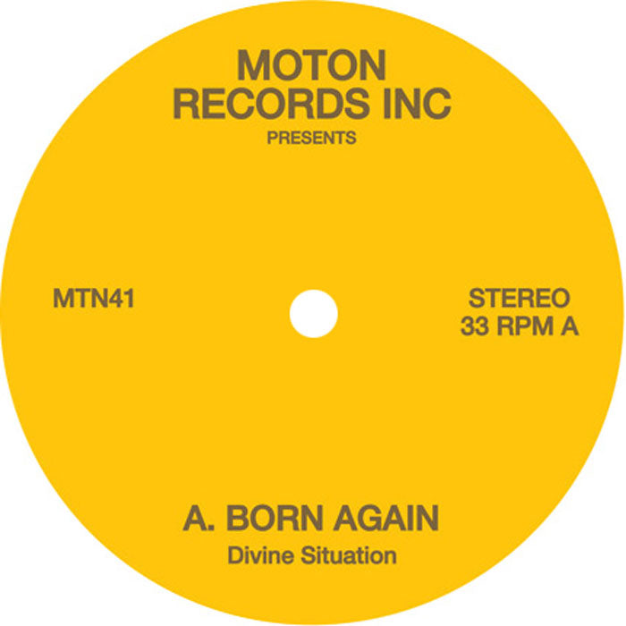 Limited Edition Yellow vinyl repress. Two huge edits by Gospel Soul music authoritarian Greg Belson & veteran edit crew, Situation member Paulo Fulci. Greg Belson has been the host of The Divine Chord Gospel Show since 2011 on dublab.com, and has shared his record collection to an ever growing worldwide audience. Over the last 4 years, he's assembled DJ tours around Europe to spread the gospel directly to the dancefloors of more discerning clubs, and it was at Glastonbury Festival specifically the NYC Downlow stage that he met Paulo Fulci. 'Born Again' became a reality and in the Summer of 2017, was road tested on Belson's tour of 50 dates over 3 months. His work as a compiler of releases on Cultures of Soul & Harmless Records have garnered support from all sides of the music industry from The Guardian to BBC Radio 6 Music. Now as 'Divine Situation', Belson & Fulci are returning to the underground sound with a slew of edits, starting with these back to back club-tested heavy hitters.