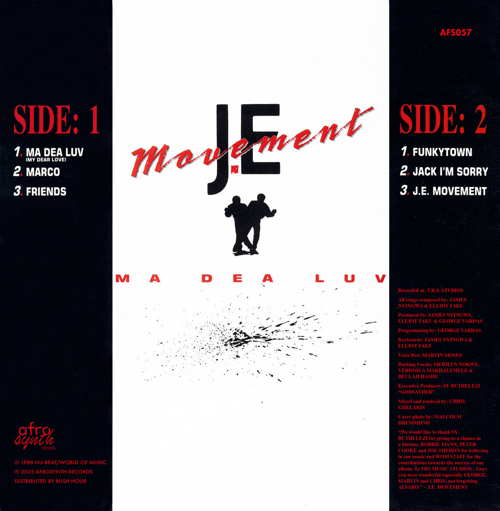 Toward the end of the 1980s South Africa's recording industry was booming. Searching for a sound that could cross over to all in the country's segregated society while also eyeing international success, a new duo emerged that quickly rendered its 'bubblegum' predecessors obsolete. Drawing on international trends and crafting lyrics for local ears, J.E. MOVEMENT — a duo made up of James Nyingwa and Elliot Faku — exploded onto the local scene with their debut album, 'Ma Dea Luv'. The future had arrived.