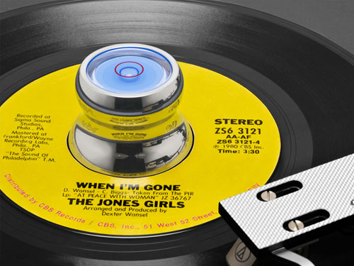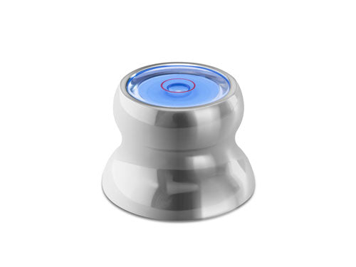 •視認性に優れたライトブルーの25mm径の大型気泡管を搭載。簡単かつスマートに水平出しを行えます。トーンアームの動作がスムーズになり、レコード再生が安定します。