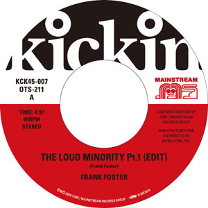 DJ 黒田大介が主宰する kickinレーベル第7弾は、1972年に制作されたFrank Fosterによるスピリチュアル・ジャズファンクの一大傑作 “The Loud Minority”。UFOの同名曲で印象的に使われたあまりにも有名なDee Dee Bridgewaterによる冒頭のアジテーションに呼応し、重心低く容赦なく攻め立てるドラマティックで切れ味鋭い稀代のジャズファンク絵巻をまさに掟破りの7”フォーマットでリリース。