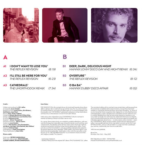 Celebrating 50 years since the release of the iconic Cathedrals album, U.S. disco legend D.C. LaRue returns with never-before-released remixes of all four original classics—pressed on strictly limited vinyl.