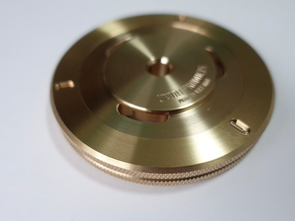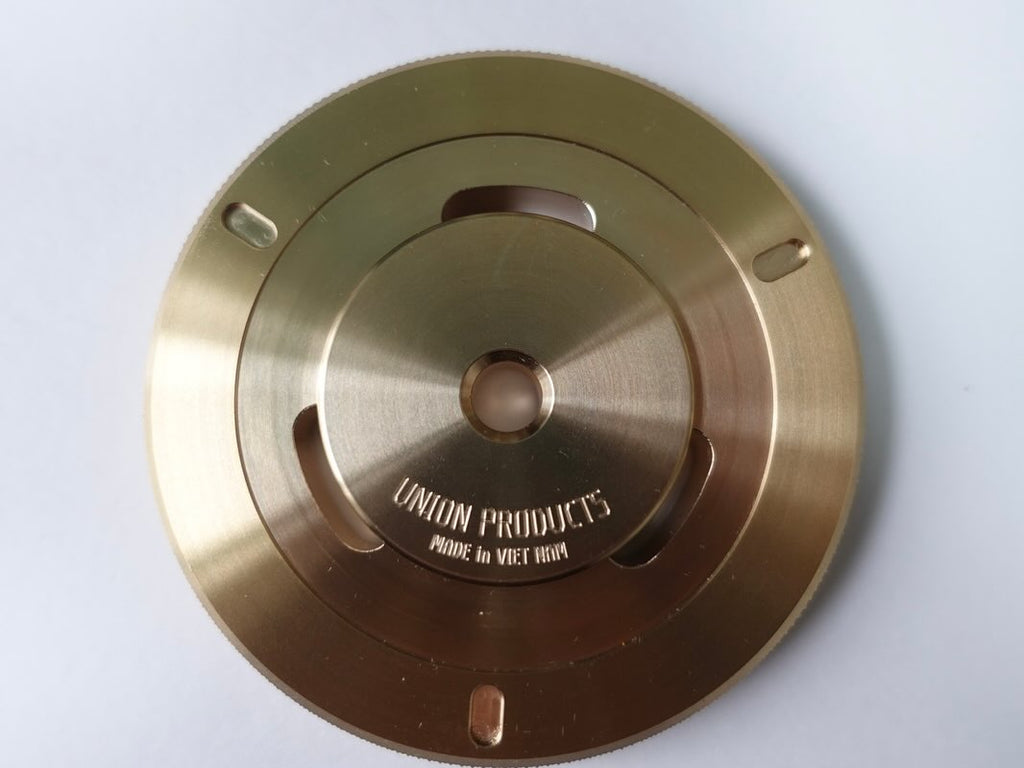 【只今売り切れ:再入荷ご予約受付中!】高精度の7インチ・アダプターで知られる兵庫発のブランドUnion Productsからの久々の新作は、ズシリと重いブラス(真鍮)製レコード・スタビライザー。