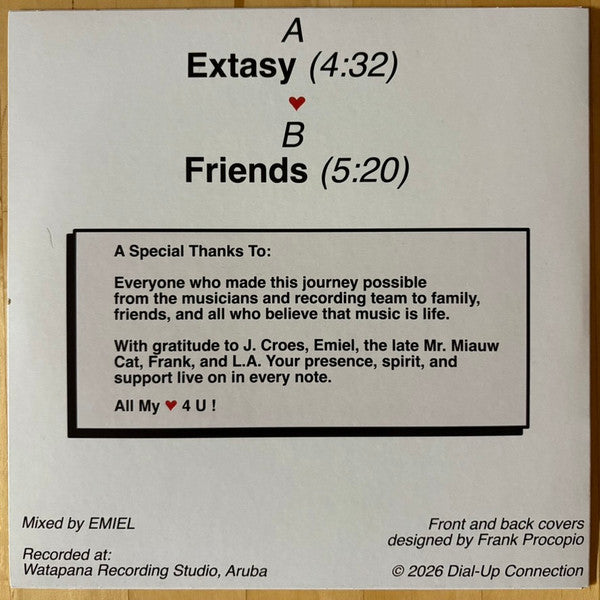 This 7” version includes the record’s two hottest hits, plus a digital download for the whole deal. On the A-Side, “Extasy” conjures images of an open air beach club, complete with the setting sun and a cocktail in hand. On the flip, it’s “Friends”, an endlessly re-playable late-night jam up there with the best of them. All My ♥︎ 4 U !
