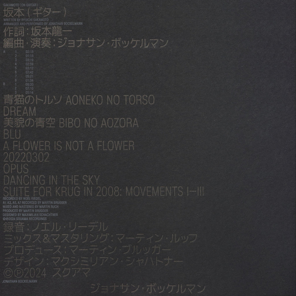 Jonathan Bockelmann is a classical guitarist and composer based in Munich who first made waves in 2023 with his debut album ‘Childish Mind’. His entry into composing were arrangements he had made of pieces by Japanese composer Ryuichi Sakamoto. Some of these have been released digitally in three editions and are now available on vinyl for the first time. The record comes in high quality packaging with an embossed art print and features both some of Sakamoto’s lesser-known works like the ‘Suite for Krug’ as well as iconic pieces like ‘Bibo No Aozora’.