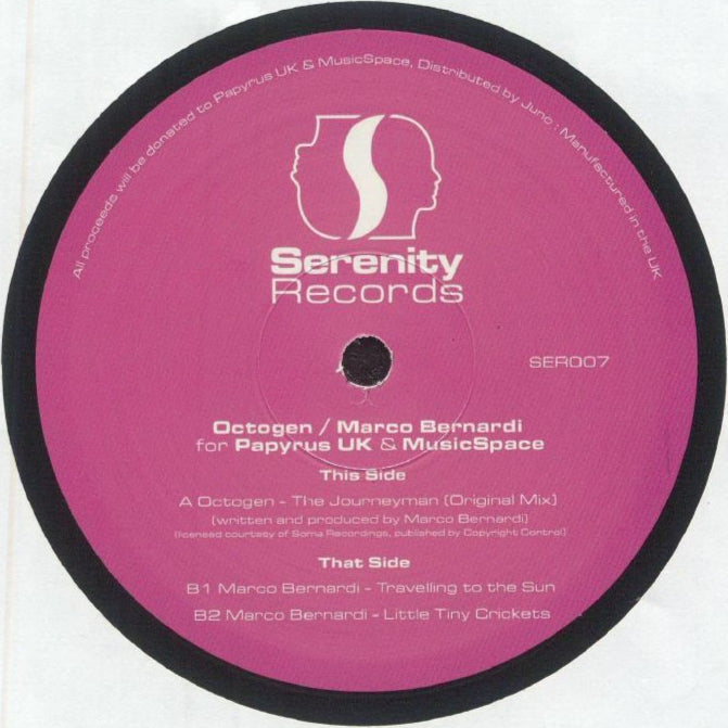 メンタルヘルス支援チャリティ・レーベルSerenity Recordsが、Marco Bernardi(別名Octogen)の貴重な音源を復刻。A面には2008年にSoma Recordingsからリリースされた人気テクノ・トラック『The Journeyman』を収録。豊かなパッドと陰鬱なベースラインが織りなす没入感のあるサウンドが特徴だ。