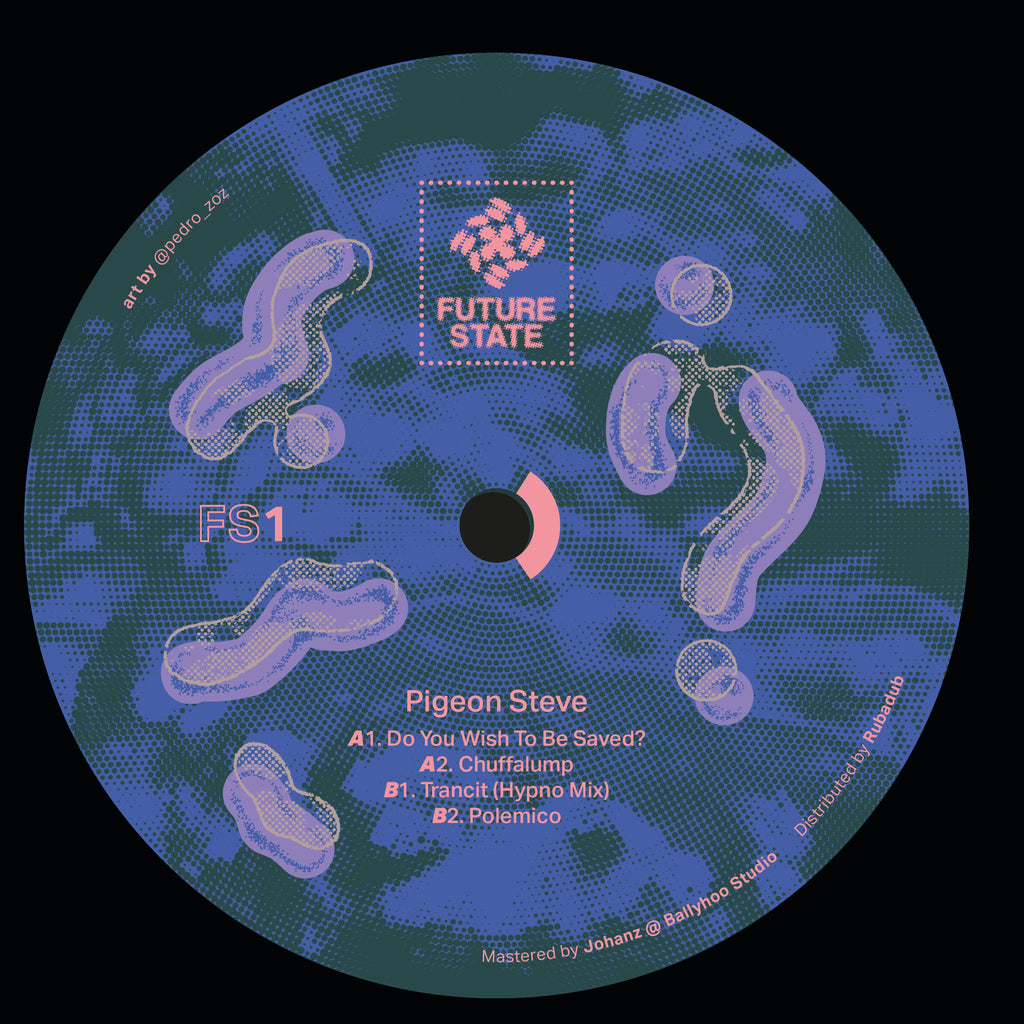 A new Glasgow label Future State opens its doors with an EP from one of the city’s finest, the inimitable Pigeon Steve. It’s a certified trip throughout, whether it’s the acid-tinged breakbeats of the opening track ‘Do You Wish To Be Saved?’ or the hypnotic chug of ‘Chuffalump’ and ‘Trancit (Hypno Mix)’. The record closes out in fine style with ‘Polemico’, a techno-trance beauty with some serious bassweight.