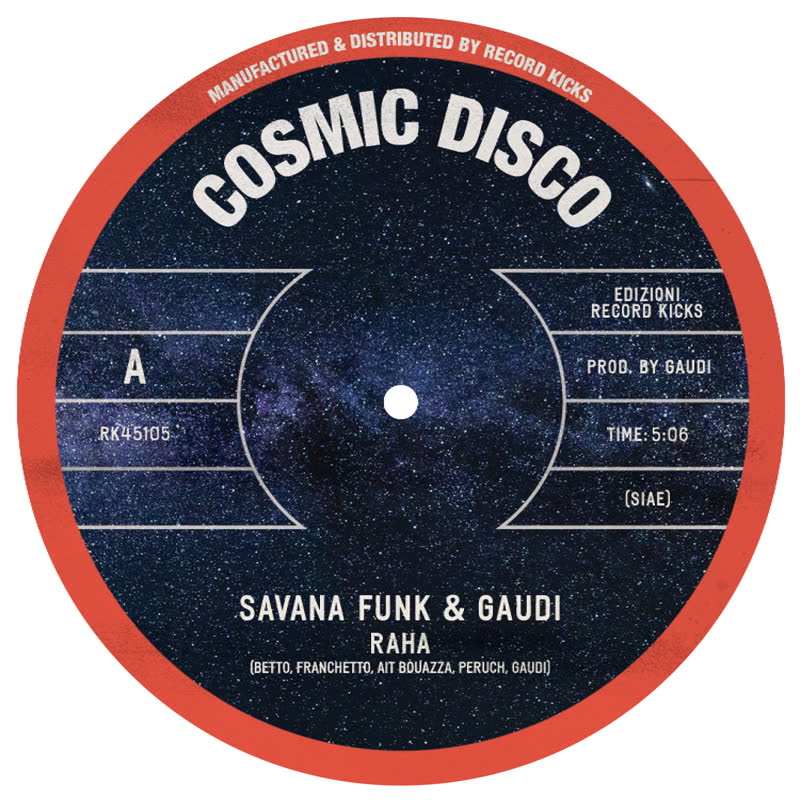 The terms "Afro-disco / Cosmic-disco" are used to describe various forms of African-influenced and Synth-based dance music with a particular method of DJing originally developed and promoted by a small number of DJs in Italy from the late 70s through the mid-80s, a freeform music-journey created with vinyl records, mixing and beat-matching a very diverse range of musical styles, from electro-funk to Brazilian-jazz, incorporating live percussion and effects. Pioneers such as DJ Mozart, Daniele Baldelli, Loda, Pery, Spranga, L'ebreo, Tosi Brandi, Lelli and venues such as Cosmic, Baia Degli Angeli, Typhoon, La Mecca, Chicago, Arlecchino to name but a few, had truly expanded and helped the development of the club-culture in Italy and subsequently in Europe. In his youth, producer and musician Gaudi was one of the punters who regularly attended these venues and followed the whole "Afro" scene, experiencing from the dancefloor that 90-110BPM hypnotic sound and subconsciously absorbing the essence of it. In fact, it is no coincidence that many of the productions he has released in his 35-year career have a strong Afro-influenced imprinting, the last of which is "Raha", the new collaborative EP released as a combo with Savana Funk, a vibrant tribute to what is considered one of the most exciting and original movement in the club scene.