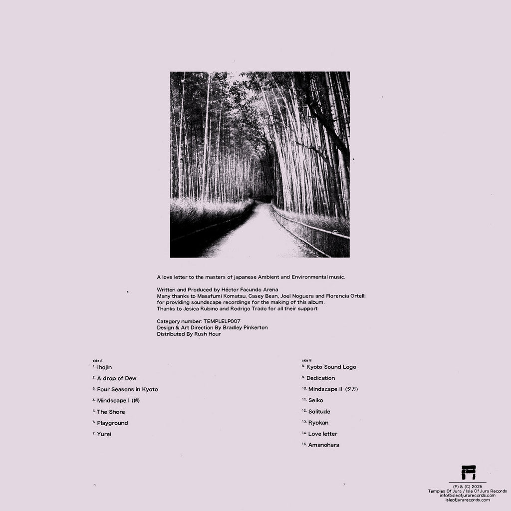 With Four Seasons in Kyoto, Facundo Arena continues his deep exploration of Japanese ambient and environmental music, blending his long-standing admiration for Kyoto’s cultural heritage with a sound that feels both nostalgic and timeless. While Postcards was an instinctive homage and The Flower, The Bird and The Mountain drew from real Kyoto field recordings, this final chapter in the trilogy leans further into the imagined, an intimate portrait of an unseen yet deeply felt Japan.